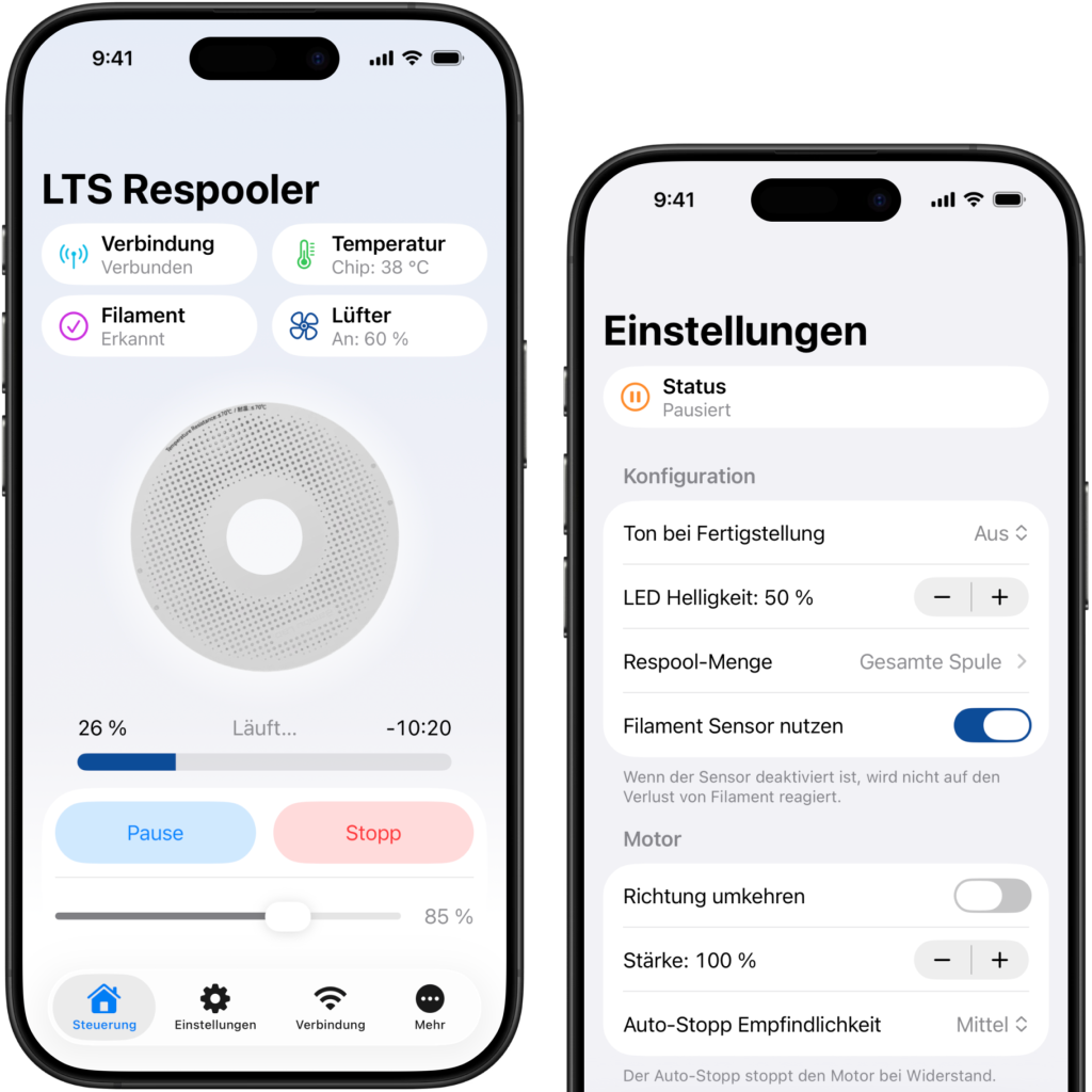 Sowohl das Control Board als auch das Driver Board lassen sich mit der App steuern! Das Bild zeigt die neuste Version der App-Oberfläche. Tritt TestFlight für Beta Updates bei.